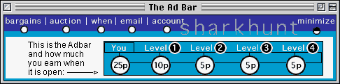 | Surfbuzz | Earn Buzzpoints for performing various actions like clicking on banners visiting web sites ect.. You use your points to bid on items in an auction. The first time I visited the site I made 20000 Buzzpoints. Bids start at 1 Buzzpoint. Auctions start in November 99. | |